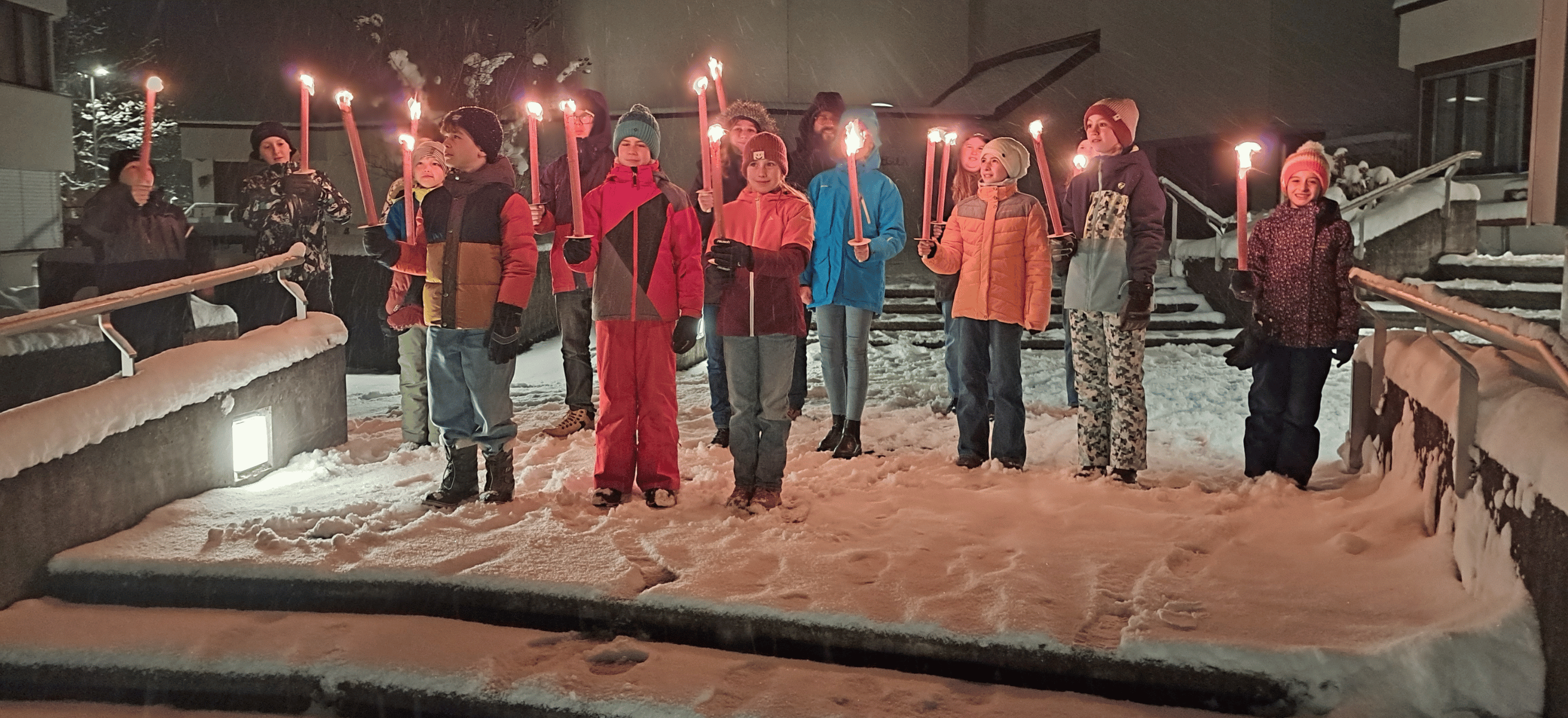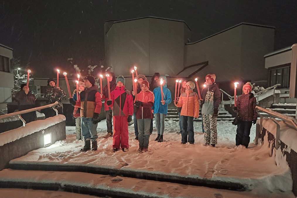 Anfangs versammelte man sich in der Kirche Wattwil zu einer kleinen Feier. Anschliessend ass man zusammen Spaghetti im Pfarreizentrum Wattwil. In einer eindrücklichen Schneelandschaft spazierten alle mit Fackeln an der Thur entlang, um den Abend mit einem leckeren Dessert abzurunden.